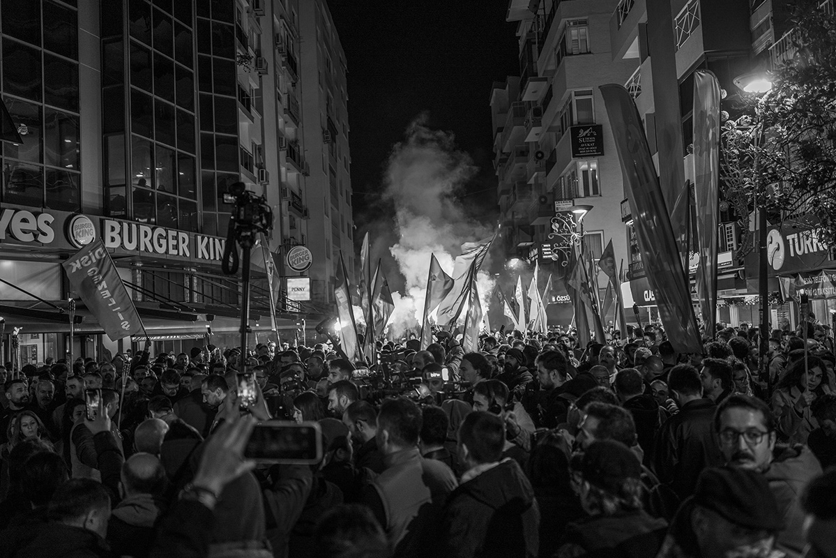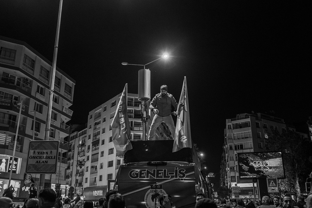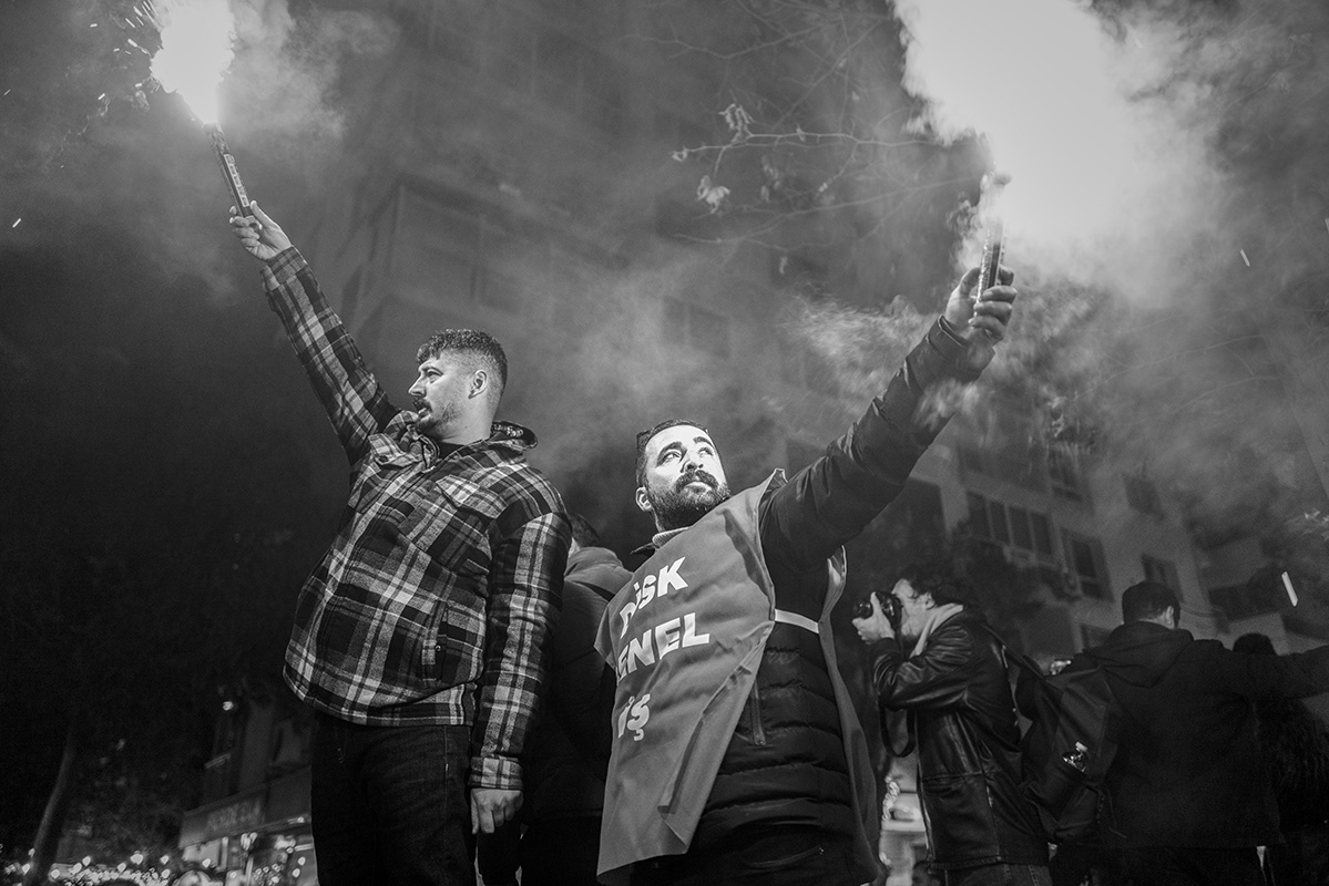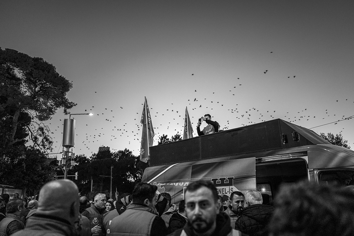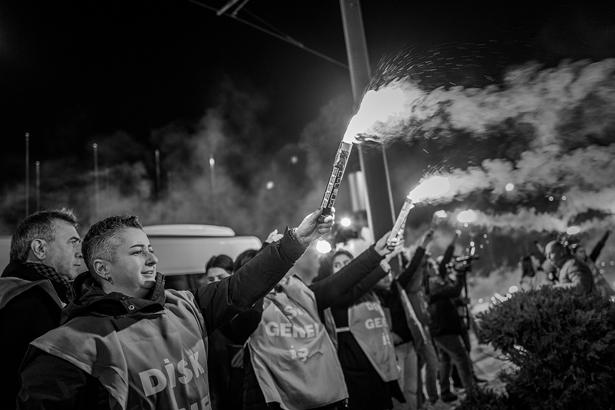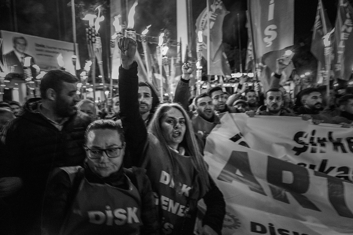 Employees of various Izmir Metropolitan Municipality subsidiaries organised a protest, including a torchlight march, to express their dissatisfaction with the late payment of their November salaries and the failure to pay additional social benefits for four months. The workers gathered in front of Lozan Square in Izmir and began their march. 9 December 2025, Izmir, Turkey. The municipality is governed by the main opposition party, the Republican People's Party (CHP), and is the third largest city in Turkey.