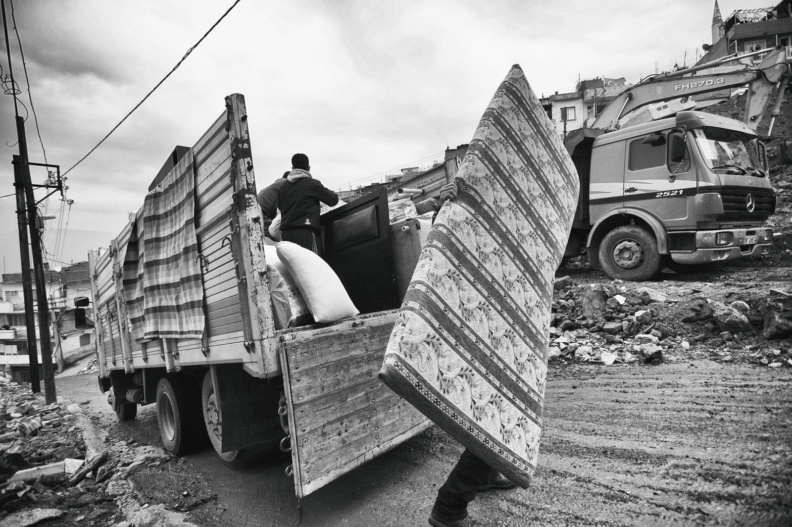 Nearly two thousand houses were demolished and thousands of people were displaced due to urban transformation in the Kadifekale district of IzmirMost people complained that their homes were expropriated at prices below their value and they could not adapt to the new housing estates they were placed in.This photo-interview work was done collectively with photographer Sinan Kılıç between 2010 and 2011.